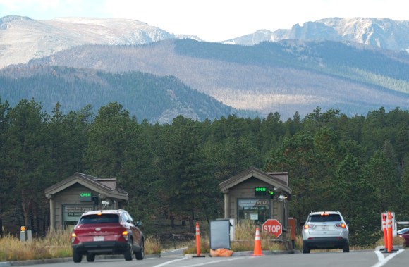 Visitors pass through kiosks to enter Rocky Mountain National Park during the shutdown of the federal government on Wednesday. (AP Photo/David Zalubowski)