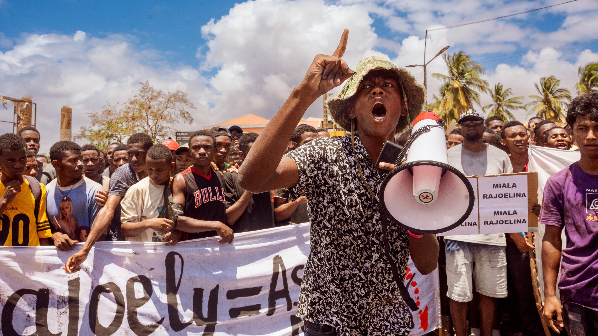 Protesters in the city of Antsiranana call for the resignation of Madagascar’s President Andry Rajoelina. At least 22 people have been killed during a week of anti-government rallies and strikes triggered by power cuts and water shortages across the island nation. FITA / AFP / Getty Images |