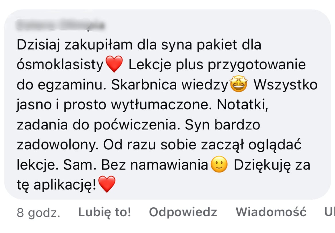 - Odbudowuje wiarę we własne siły. Każde rozwiązane zadanie i zrozumiany temat to mały sukces, który buduje pewność siebie przed wielkim testem.