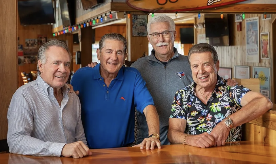 | Neil Kiefer (far left), CEO of the Original Hooters Founders Group, alongside cofounders (from the left) Edward Droste, Dennis Johnson, and Gil DiGiannantonio EDWARD LINSMIER FOR FORBES |