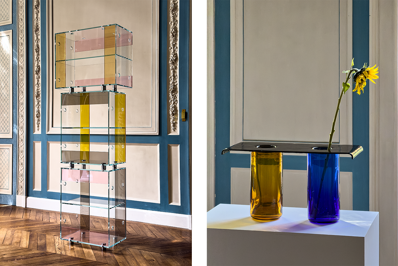 It’s something that is exemplified by Paris-based design studio Marie et Alexandre, co-founded by Marie Cornil and Alexandre Willaume. The duo presented two custom-made items as part of Designers of Tomorrow: a modular totem that can be reconfigured to serve as a table or seat; and a vase made from thermoforming glass – a mould-making process, typically used to create plastic objects. “Our approach is artistic but practical,” says Cornil. “We use craftsmen but keep industrial functionality in mind when making pieces. It’s important to make sure that design is accessible by considering production and technology.” In short, the duo strike a balance between humanity and technology by using industrial processes in new, unexpected ways.
