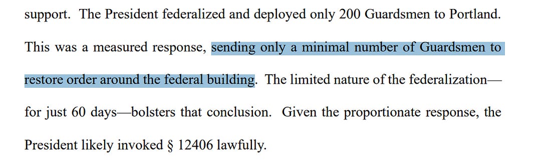 Trump's Power Grab is Headed for the Supreme CourtThe Seventh and Ninth Circuit decisions on Trump's National Guard DeploymentsTrump’s ask is on its way to the Supreme Court. He wants to have the ability to deploy military troops on American streets, despite the history and tradition, to say nothing of the law, in this country, which reserves police powers to the states absent extraordinary circumstances. Trump wants to be able to use fabricated claims of out-of-control crime to justify an unprecedented power grab by an American president, one that has dangerous overtones when considered in the context of the midterm elections. Sunday night, we discussed Trump’s plans to use the National Guard for domestic law enforcement purposes and the Seventh Circuit’s decision that he could not deploy them to Chicago. Monday, the Ninth Circuit’s decision, as expected after oral argument, went the other way, holding that Trump’s plan to deploy the Guard to Portland was lawful. The decision was 2-1. The majority ruled that sending 200 troops to protect the federal building for 60 days was a “proportional response” to the crime issues Trump believes exist in the city. Writing in dissent, the third judge on the panel took a different view. Judge Susan Graber wrote, “We have come to expect a dose of political theater in the political branches, drama designed to rally the base or to rile or intimidate political opponents. We also may expect there a measure of bending—sometimes breaking—the truth. By design of the Founders, the judicial branch stands apart. We rule on facts, not on supposition or conjecture, and certainly not on fabrication or propaganda. I urge my colleagues on this court to act swiftly to vacate the majority’s order before the illegal deployment of troops under false pretenses can occur. Above all, I ask those who are watching this case unfold to retain faith in our judicial system for just a little longer.” On Wednesday, the Ninth Circuit, where a panel previously reversed a decision by a California federal Judge, Charles Breyer, limiting the deployment of Guard troops in California, declined to rehear that decision en banc, permitting it to stand and the administration to proceed. Now, we wait to see whether there will be a different decision in the Oregon case. That seems possible, particularly given Judge Graber’s invitation to the court and the facts, which make the state’s position against the federal government stronger than in the California case. But it’s worth noting that the Ninth Circuit, which used to be the most liberal circuit in the country, was remade during the first Trump administration. It’s possible they will let both the California and Oregon decisions in the administration’s favor stand. Either way, two critically important issues are headed to the Supreme Court: