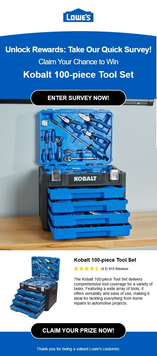 Win a Kobalt 100-piece Tool Set - Take Our Lowe's Survey Today!