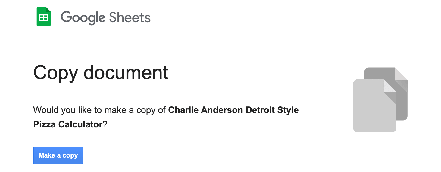 Simply click "Make a copy", and a copy of the spreadsheet will be saved to your Google Drive!