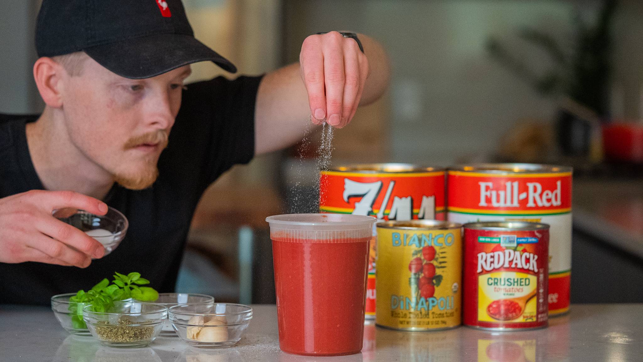 In short, it's all about using the proper amount of salt, but that’s not always as easy as it sounds! There are a lot of factors that affect the flavor of your pizza sauce, including: what brand of tomatoes you're using, how much sauce you put on your pizza, your baking method, whether you cook the sauce before it goes on the pizza, etc.