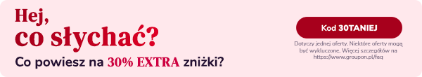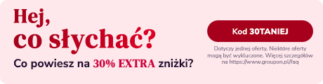 | | Multikino | | Zestawy barowe: napój z popcornem lub nachosami dla 1 lub 2 osób | Wiele lokalizacji 4,73 (3 445) | | | | |  | | Termy Gorący Potok | | Bilety do strefy basenowej i spa codziennie w Termach Gorący Potok | | | | | | | |  | | Aparatka Studio Fotograficzne... | | Ciążowa, noworodkowa, rodzinna lub okolicznościowa sesja fotograficzna | | 450,00 zł Od 199,00 zł | | 159,2 zł z kodem PROMO, Ważny do 1.11 | | | |  | | Face Beauty | | Liftingujący masaż twarzy Kobido w Face Beauty | | 180,00 zł 139,99 zł | | 111,99 zł z kodem PROMO, Ważny do 1.11 | | | | | | |  | | Termy Gorce | | Baseny, sauny, grota solna i więcej w Strefie Relaksu w Termach Gorce | | | | |  | | Irmar | | Pielęgnacja aut każdego rozmiaru: mycie parowe, pranie, wosk i więcej | | 59,00 zł Od 49,00 zł | | 39,2 zł z kodem PROMO, Ważny do 1.11 | | | | | | |  | | Nanovo | | Rytuał day spa w wybranej odsłonie | | Od 179,99 zł | | 143,99 zł z kodem PROMO, Ważny do 1.11 | | | |  | | Studio Urody Zawsze Piękna | | Japoński masaż twarzy Kobido i więcej | | Od 129,00 zł | | 103,2 zł z kodem PROMO, Ważny do 1.11 | | | | | | |  | | Polonia Wax Museum Kraków | | Bilet do muzeum figur woskowych w Polonia Wax Museum | 44,99 zł Od 36,99 zł promocja kończy się 02.11 | | | |  | | Studio Urody Zawsze Piękna | | Oczyszczanie wodorowe twarzy i więcej w Studio Urody Zawsze Piękna | | Od 119,00 zł | | 95,2 zł z kodem PROMO, Ważny do 1.11 | | | | | | |  | | Magia Beauty Clinic | | Odkryj relaksacyjny Head Spa z masażem głowy i maseczką na twarz | | 350,00 zł 199,99 zł | | 159,99 zł z kodem PROMO, Ważny do 1.11 | | | |  | | Karting Arena Kraków | | Poczuj prędkość, przeżyj emocje! Jazda gokartami po nowoczesnym torze | | 42,00 zł Od 29,99 zł | | 23,99 zł z kodem PROMO, Ważny do 1.11 | | | | | | | |