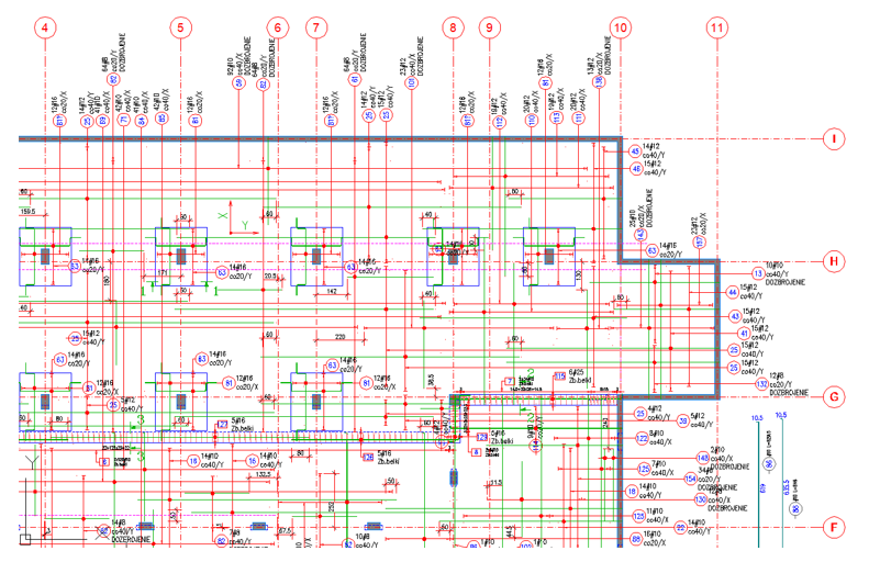 Żelbet BIM to propozycja zachowująca wygodę pracy w dobrze znanym środowisku 2D, lecz z nowymi zasadami parametryzacji, optymalizacji i kompleksowości danych projektowych. Nowe polecenia realizują szybkie tworzenie rysunków 2D z zachowaniem powiązań między widokami zbrojenia oraz między zbrojeniem i opisami. Efektem jest automatyczna aktualizacja widoków zależnych prętów, opisów oraz generowanie wizualizacji zbrojenia w 3D. Aby utworzyć wizualizację zbrojenia należy narysować zbrojenie na przekrojach pochodzących z modelu wykonanego w BiK Konstruktor BIM.