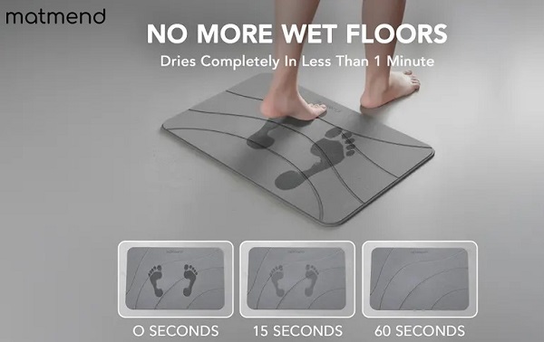 MatMend is the instant-dry stone bath mat that absorbs water in seconds and stays completely dry. No more stepping on damp, bacteria-filled fabric mats!