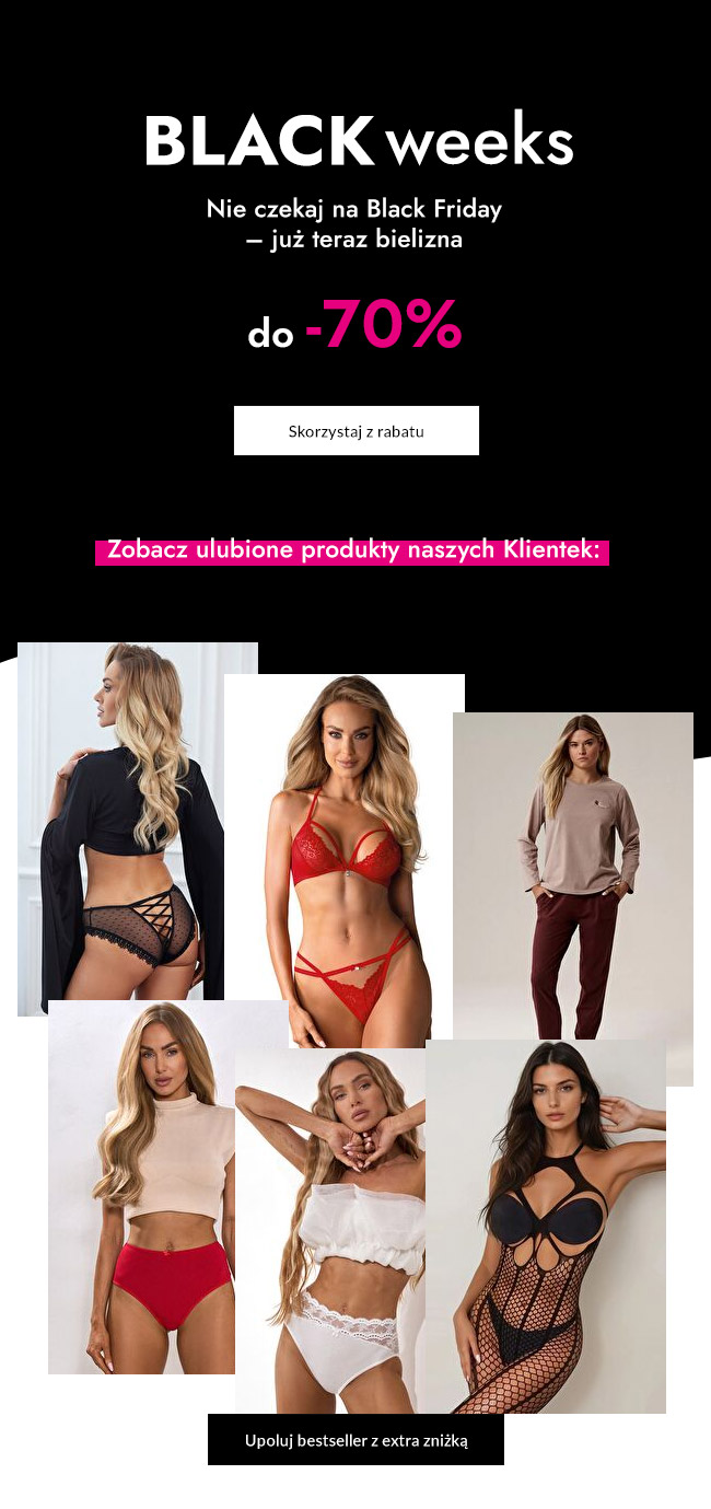 | Do -70% i -30% na całą ofertę. Nie odkładaj przyjemności – odkryj Black Weeks już dziś |