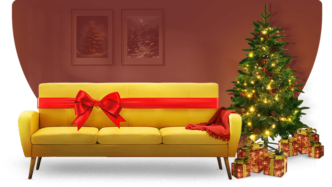 Stwórz swój własny, przytulny, świąteczny dom z przemyślanymi prezentami w każdym zakątku. Wybierz sofę do relaksu, stolik kawowy na świąteczne smakołyki lub fotel, aby zająć ulubione miejsce. Dodaj stół jadalny do wspólnych posiłków, migoczące lampki dla dodatkowego blasku i choinkę, aby dopełnić świąteczną atmosferę.