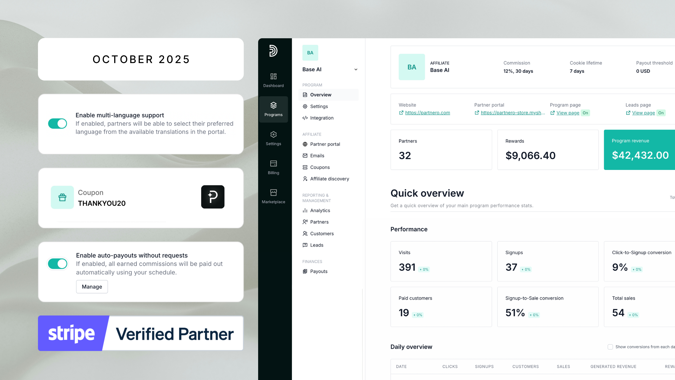 We’ve rolled out a set of upgrades to make managing your partner programs smoother, clearer, and more flexible. Here’s a quick look at the latest improvements: