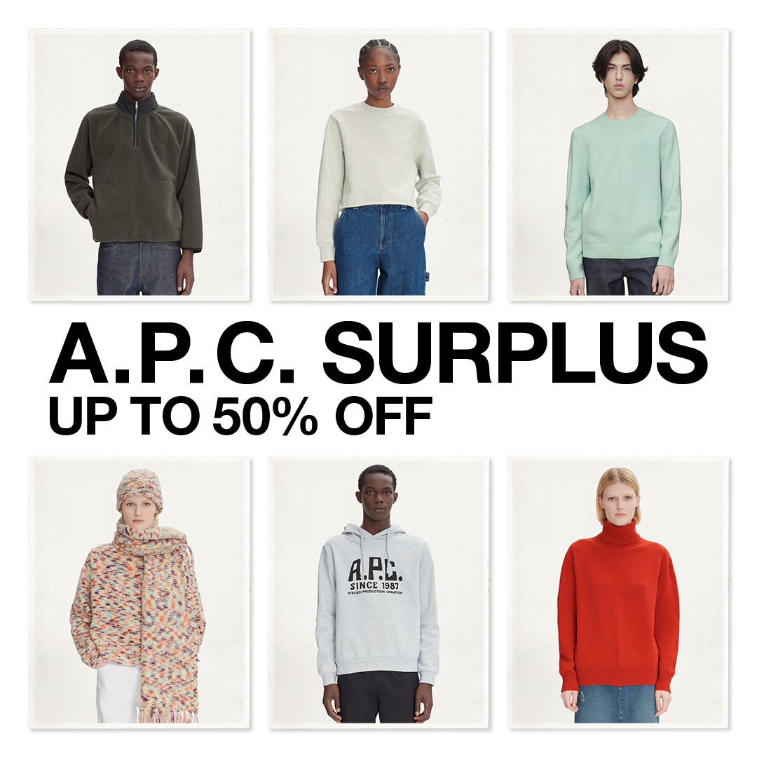 on the A.P.C. website. Rediscover pieces from previous seasons at up to 50% off. There is a limited number of pieces.