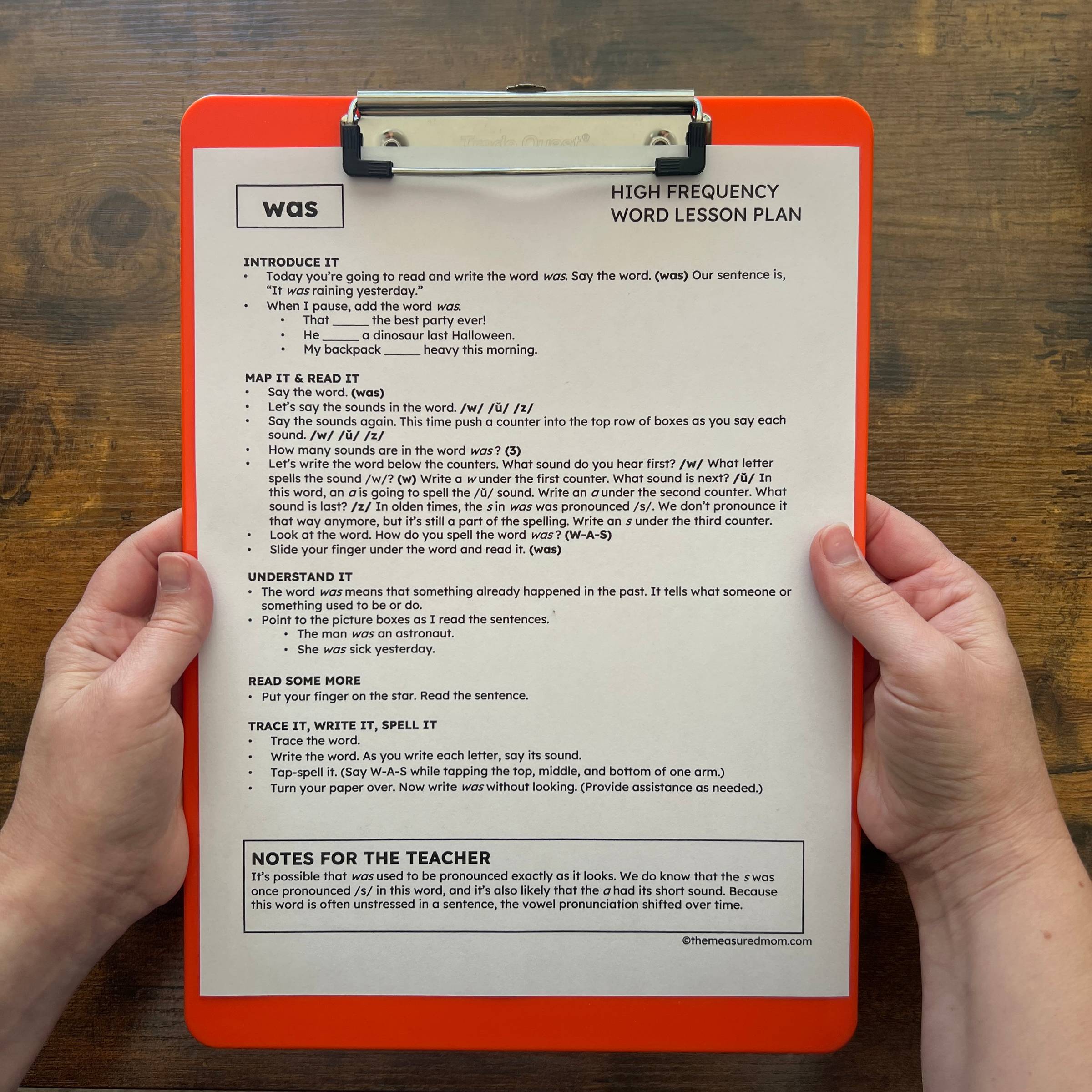 The Notes for the Teacher section (at the bottom of the image in the above picture) looks different for each word, depending on what would be most useful. The section for a word might include: