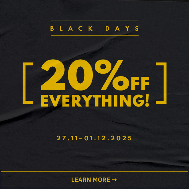 At SUPER-SHOP, we're celebrating BLACK DAYS! To get a 20% discount, just add a product to your cart, and its price will be automatically reduced! The promotion includes all categories: shoes, clothing, accessories, skateboard, and snowboard*.