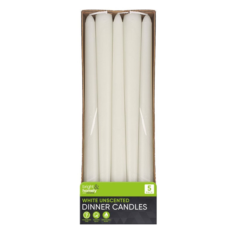 DINNER CANDLES WHITE (7 HOUR BURN) 5 PACK