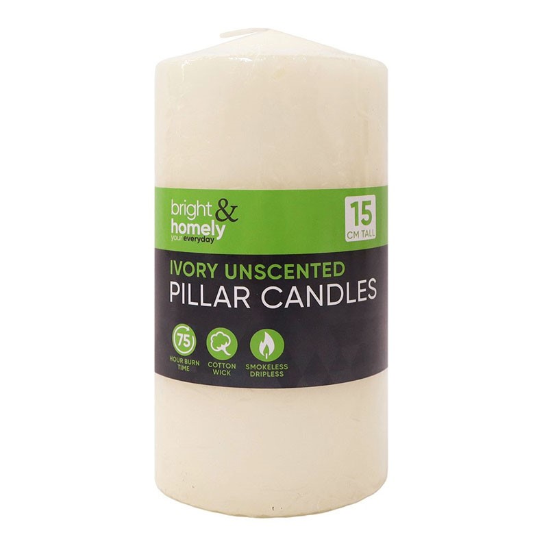 PILLAR CANDLE IVORY (75 HOUR BURN) 15CM