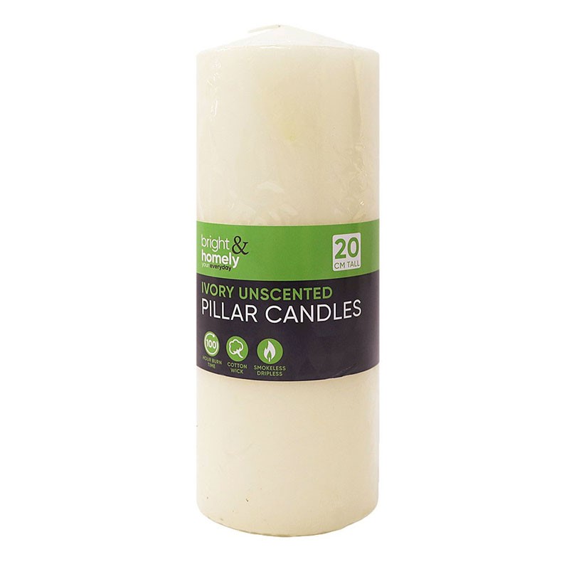 PILLAR CANDLE IVORY (100 HOUR BURN) 20CM