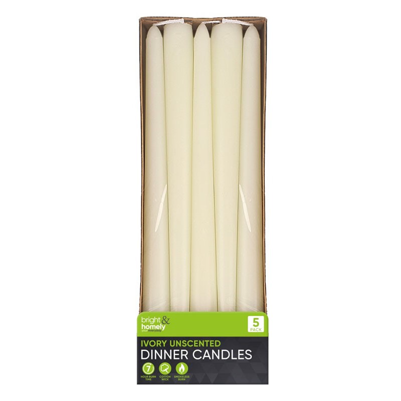 DINNER CANDLES IVORY (7 HOUR BURN) 5 PACK