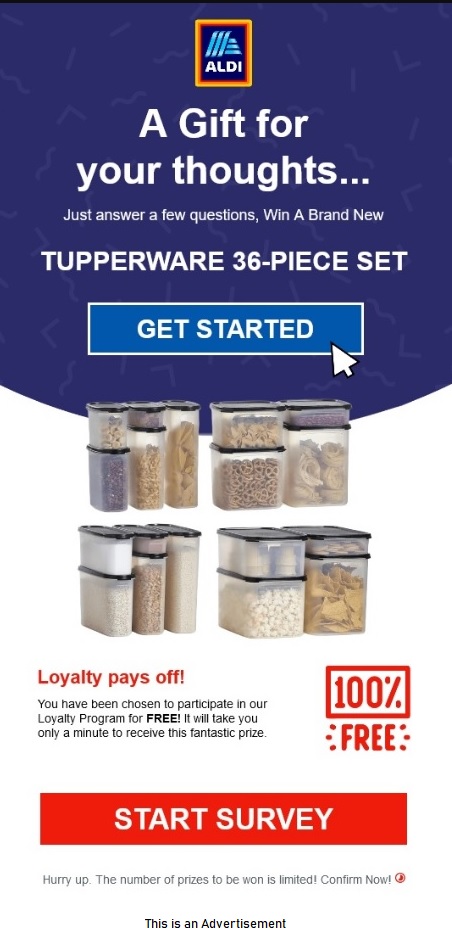You Could Receive a Tupperware Set When You Complete Our Short Aldi Survey