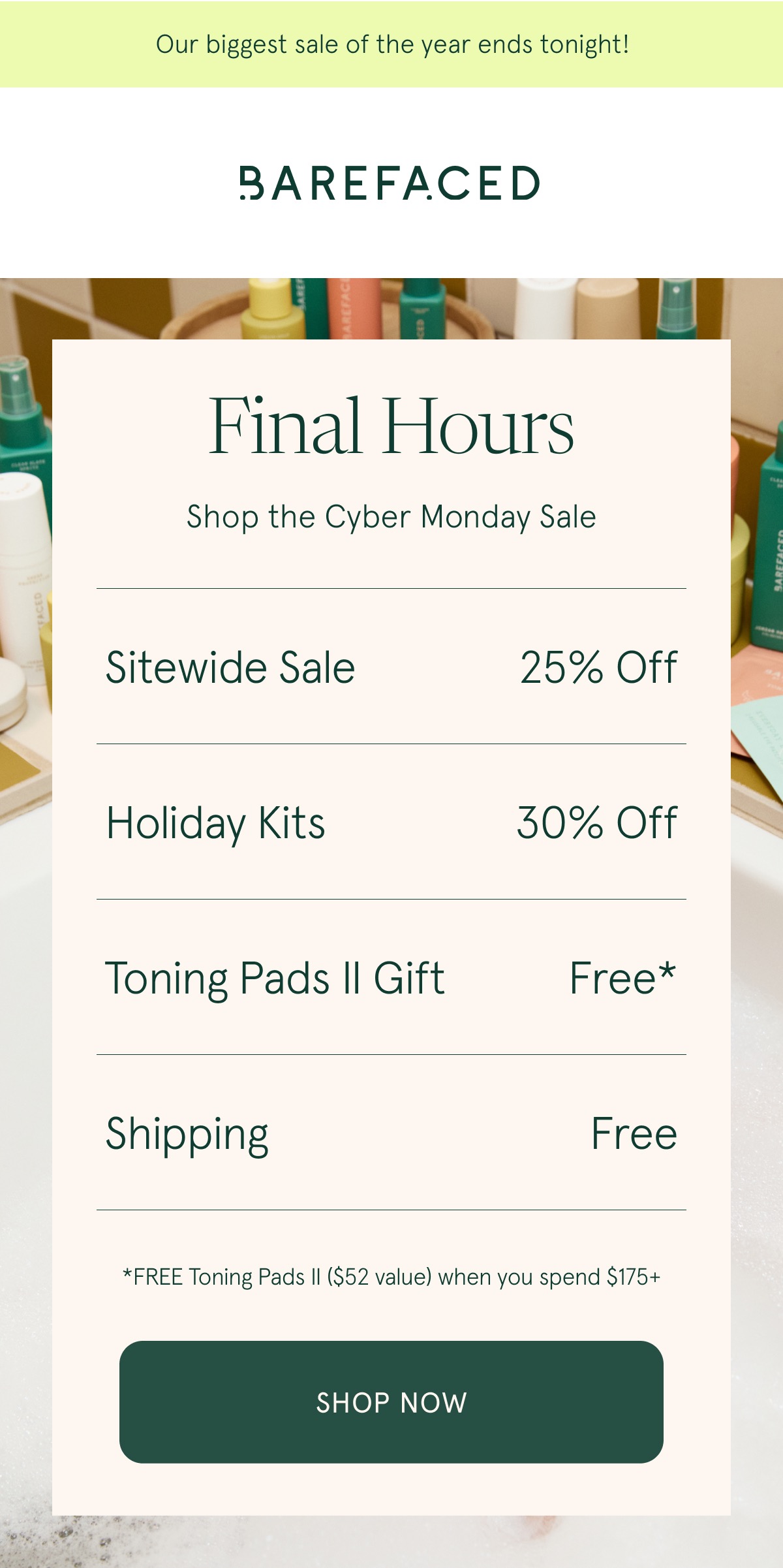 Cyber Monday: Take 25% off site wide, excludes sets and holiday kits. Excludes Revision products. Cannot be combined with other offers. Gift With Purchase only available with new orders over $175. Can not be applied retroactivley or on recurring orders.