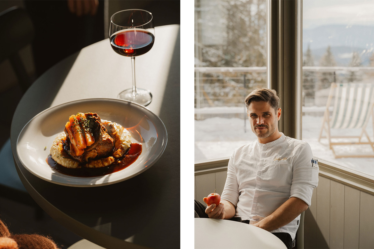 Earlier this month, the pair opened the latest addition to the Miramonti family: the Rotwand Mountain Restaurant, set right in the middle of the Meran 2000 ski area at 1,818 metres. For the culinary direction, they brought in Südtirol chef Christoph Huber, whose interpretation of Alpine cuisine is well known from his restaurant Zur Blauen Traube in Algund, which opened in 2019.