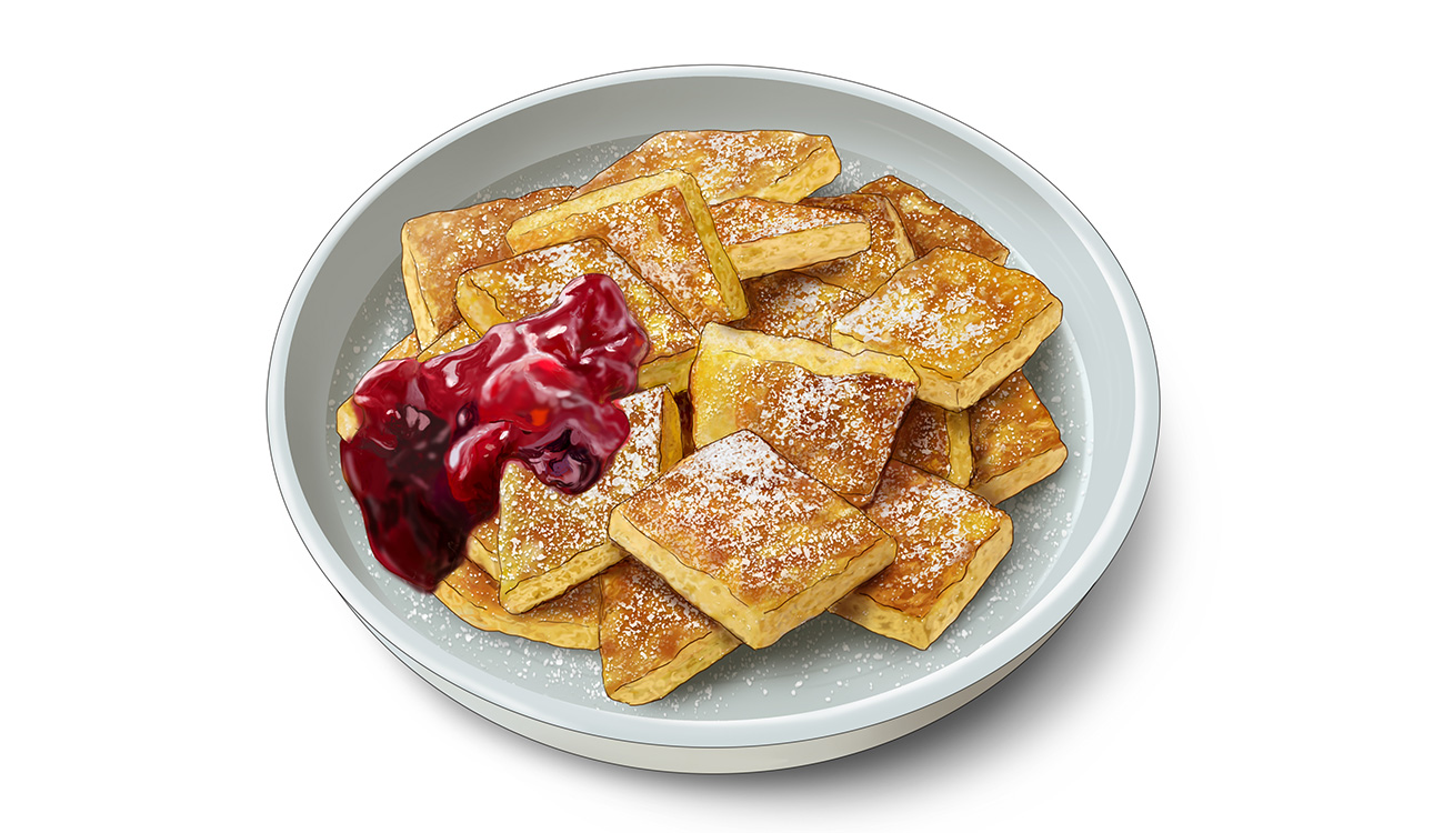 Kaiserschmarren (or Kaiserschmarm) is a style of shredded and caramelised pancake that takes its name from the Austrian emperor Franz Joseph I. While the Austro-Hungarian Empire dissolved a century ago, this dessert remains popular across Austria, Germany, Hungary and Czechia. This version by our Swiss chef favours elegant rhombus-shaped pieces of pancakes as opposed to the roughly shredded variants.