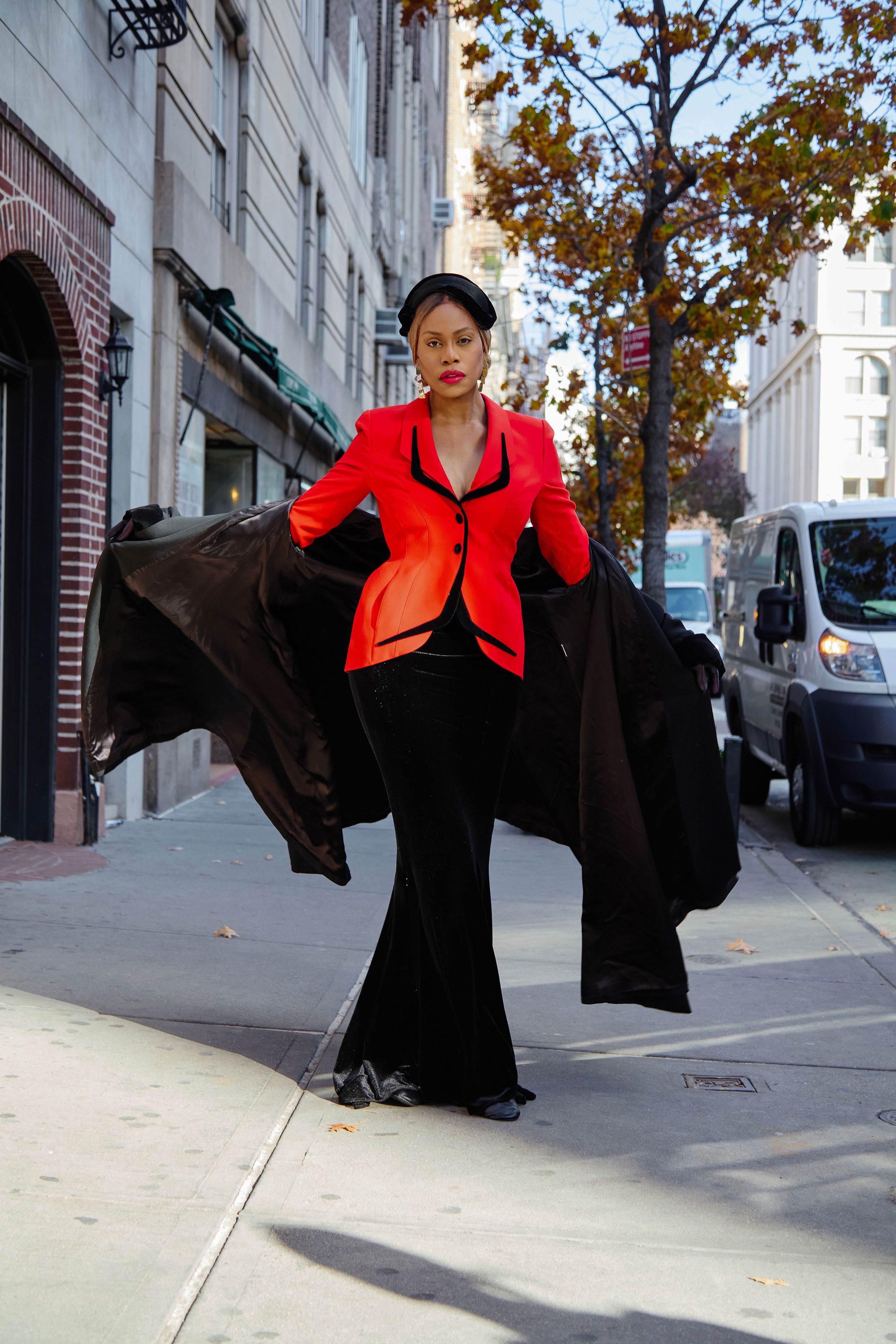“When I did Rocky,” says Laverne Cox, referring to the 2016 televised remake of The Rocky Horror Picture Show, “Kenny Ortega, the director, treated me like any of his divas. He insisted that I should not carry my bags. Word for word, he said, ‘Laverne? You should never carry your bags.’” We’re sitting in a quiet alcove of the historic Stonewall Inn on a weekday afternoon, the muffled sounds of the Top 40 playing as the first few patrons of the day mill about on the other side of the venue. She continues, “‘You’re the star.’ That’s what Kenny told me. I remember thinking, I can’t get used to this.”