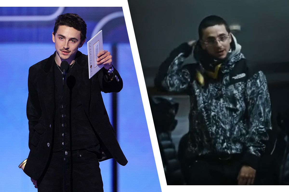 Now, he cruises to the awards-season finish line shaking the theatrics. At the Golden Globes earlier this month, Chalamet wore black Timberland boots. The brand has come to signify rugged, often uncultured New York grit, its actual working-class relevance and celebration in seminal rap lyrics feeding internet snarkers’ stereotypes of city dwellers. This was Chalamet toning things down. His acceptance speech ditched the self-promotional pomp of recent weeks, as he humbly congratulated his fellow nominees and thanked his partner of three years, Kylie Jenner. He seems to crave a measure of distance from the antics that earned him a spot on the Know Your Meme page for “wigga,” charitably defined as a white guy getting overly familiar with the trappings of inner-city Blackness. His ability to weaponize a fine-tuned silliness at no cost to prestige reflects an industry where white actors enjoy greater freedom in promotion and self-expression.