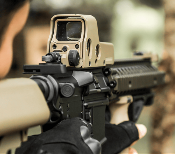 And get this. It's actually better than that famous optic... Because this one is equipped with both RED and GREEN laser holograph reticles.