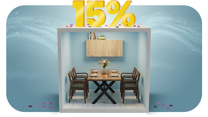 Ciesz się jadalnią z stołami i krzesłami, które łączą całą rodzinę. Wybierz 2 meble do jadalni z 15% rabatem, by posiłki były wygodniejsze.