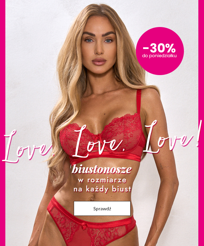 | | | | Czarne figi damskie brazyliany z koronką Kiss 45,99 zł zł 33,99 zł | | | | | | Biustonosz balconette usztywniany z odpinanymi ramiączkami VB-118 159,99 zł zł 103,99 zł | | | | | | | Marilyn ciepłe krótkie skarpetki damskie w pieski B38 14,90 zł | | | | | | | NANTES czarna tiulowa koszulka z koronką w uniwersalnym rozmiarze 249,99 zł 69,99 zł | | | |