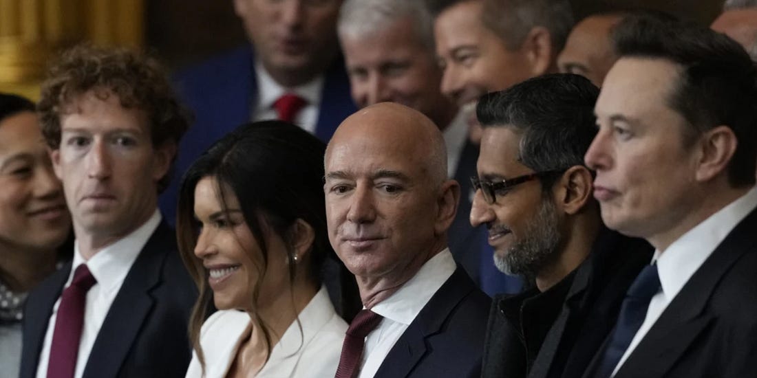Is kicking the tech bros in the um, wallet an effective way to rein in Trump?Author Scott Galloway says a one-month boycott/unsubscribe protest that could hurt the stock market is the only way to get Trump's attention.Well, well – look who had better seats at Trump’s inauguration than his own Cabinet members. Is that guilt on Mark Zuckerberg’s face? Nah. (AP Pool Photo)Good morning, folks. This is the first issue of Fast Forward with payments enabled. If you are new here, Welcome! You can see what this newsletter is all about by visiting the FF homepage here, and checking out my About page here. The main essay in every Wednesday edition is free. The rest of the Wednesday newsletter, as well as other items I send out during the week, are for paid subscribers. If you’d like to join that group, there is a button below. Many thanks for your support. 💰 Kick them in the um, walletMy “What can I do?” post from Jan. 28 listed ways that people could help undocumented (and legal) immigrants in Minneapolis (or anybody who is not white, for that matter). They are being targeted, assaulted, and detained by ICE and Border Patrol, and many nonprofits and other organizations are stepping in to help. It was the most read and most shared Fast Forward newsletter in a long time. You can read it here. But it was clear in your comments and emails that you want to do more. In fact, one Fast Forward reader emailed to say that she was so dismayed by Home Depot’s cooperation with ICE — letting agents set up in their parking lots and nab customers who may or may not be undocumented immigrants — that she cut her Home Depot card in half and called the company to cancel her account. “I realized there was something I could do,” she wrote. “Cut off any sources of income from me.” Which brings me to a campaign by Scott Galloway, the NYU marketing professor, entrepreneur, and author who frequently rails against the monopolies enjoyed by big tech companies, especially Alphabet (Google, YouTube, Android), Amazon, Apple, and Meta (Facebook, Instagram, WhatsApp, Threads). Yes, Galloway’s the guy whose recent comments about the so-called male loneliness epidemic have struck many as implying that women are at least partly to blame. The Matriarchal Blessing newsletter by Celeste Davis here on Substack sets out the case really well. But his latest idea has merit: For the month of February, drop your subscriptions and memberships in the big tech and AI companies to try to effect a change in their market values. Galloway praises the protests and resistance in Minneapolis and elsewhere as absolutely critical to keep the spotlight on the shocking abuses by ICE and Border Patrol agents. But he points out that Trump is unfazed by outrage and unmoved by protests. “Praised by tech CEOs, surrounded by sycophants, emboldened by multimillion-dollar settlements, and enriched by his return to the White House,” Galloway writes, “Trump marches on unchecked.” But wait — there is something that gets Trump’s attention: The capital markets. The Orange Menace is rather dim, so he thinks that the stock market is the same as the economy. Job growth may be slow, inflation may be pinching, and farmers may be going bankrupt, but if the S&P 500 ticks up a few points, then Trump’s happy; Big Macs all around! Like I said: a simpleton. Galloway thinks we can use this irrational focus on the stock market to our advantage by leveraging it as a potent weapon of resistance. He wants compassionate, fair-minded Americans to join a month-long national economic strike targeting tech and AI companies. Why only tech and AI companies? Two reasons, Galloway says: 1) Remember Trump’s most recent inauguration, where his Cabinet picks had to sit behind the likes of Jeff Bezos, Mark Zuckerberg, Sundar Pichai, and Elon Musk? Remember who’s helping pay for his ballroom? Remember who funded the “Melania” documentary? (More on that below.) These guys have gone out of their way to flatter and enrich Trump, so he listens to them. 2) A modest reduction in their companies’ growth could have a ripple effect and a substantial impact on valuations. He explains: