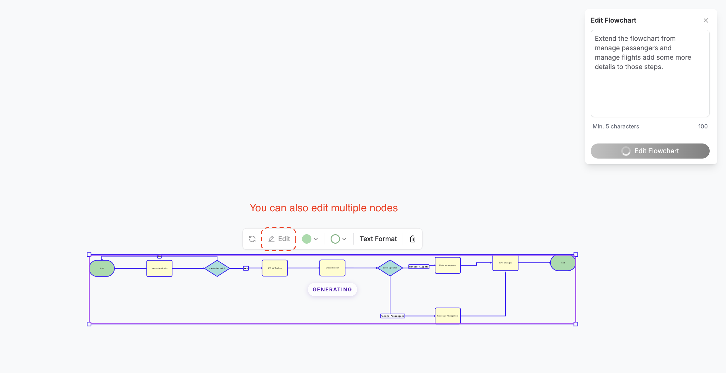 nodes and hit Edit to re-prompt the AI to expand or refine those steps.