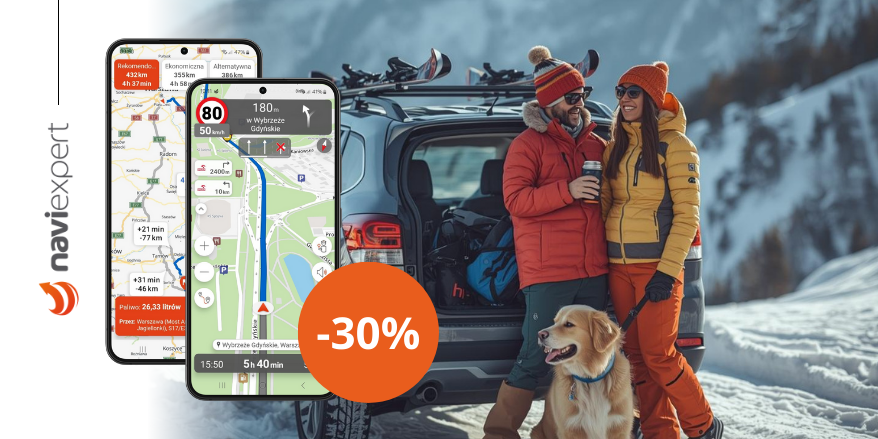 Sprawdź, jak zmienił się NaviExpert i zabierz go na ferie. Tym bardziej, że teraz roczne abonamenty nawigacyjne kupisz 30% taniej - idealny moment, by ruszyć w trasę bez stresu