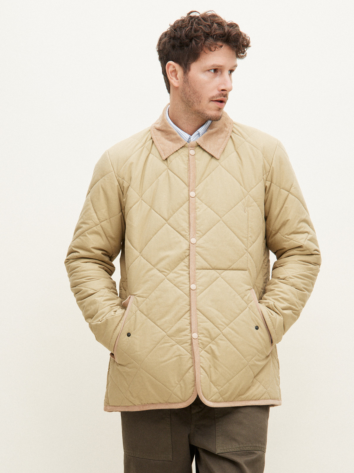 This quilted jacket features Lavenham’s classic diamond pattern in a nod to the brand’s origins. Founded in 1969, Lavenham has more than 50 years of quilting expertise and still crafts every item in its Suffolk factory. Originally designed for horse riding, the label’s durable, practical designs have become modern wardrobe staples. Made in England and available in beige or dark olive, the jacket’s cotton and A-line cut lend it a lightweight feel. With a water-resistant finish, it’s ideal for braving rough weather in comfort and style.