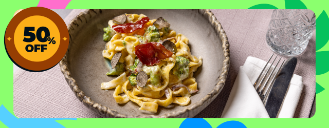 Starting today, book your table and treat yourself to mouthwatering delights with 50% off the whole food menu* at all participating restaurants.