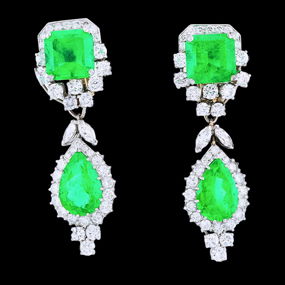 24.58ctw Colombian Emerald and 7.60ctw Diamond Earrings