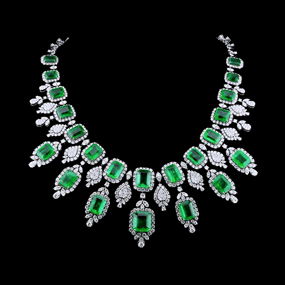 87.90ctw Emerald, 27.50ctw Diamond and 18K Necklace
