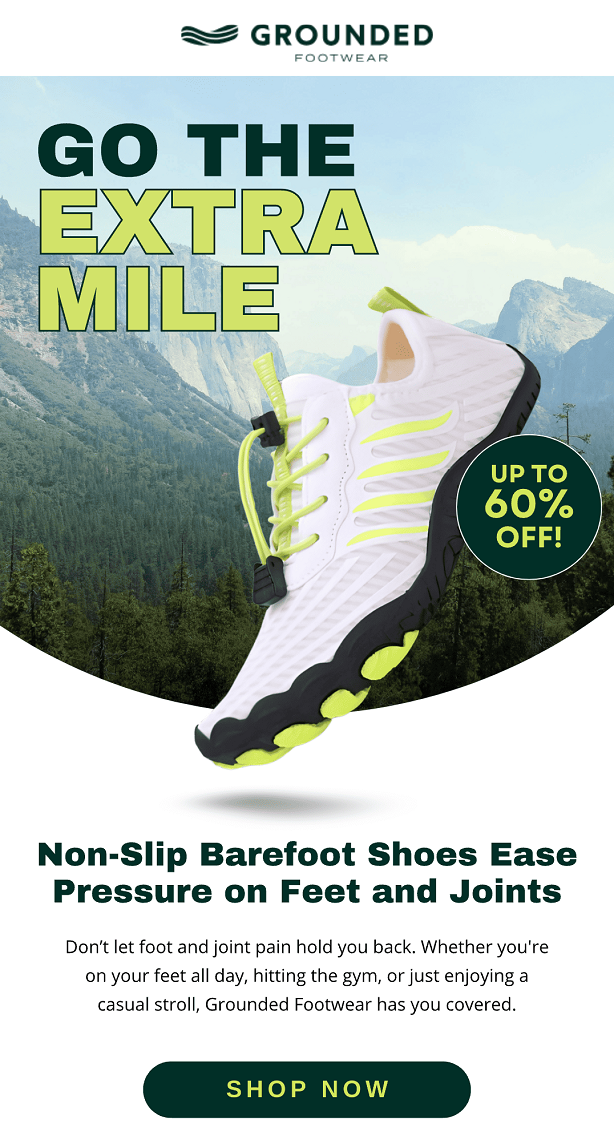 Stop Suffering from Foot Pain - Grounded Footwear 50% Off Today Only!