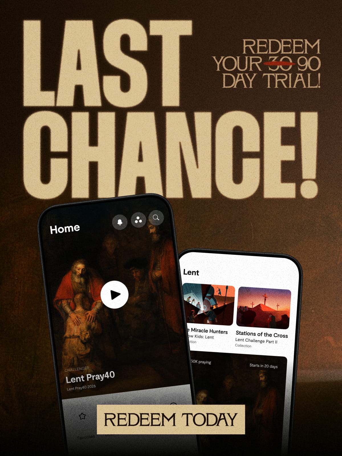 There’s seriously no better time to dive into prayer and prepare for Holy Week and Easter, walking beside Jesus as He carries His cross for us and, ultimately, lays down His life for us. Don’t miss this opportunity and redeem your extended trial now before it’s gone at midnight! |