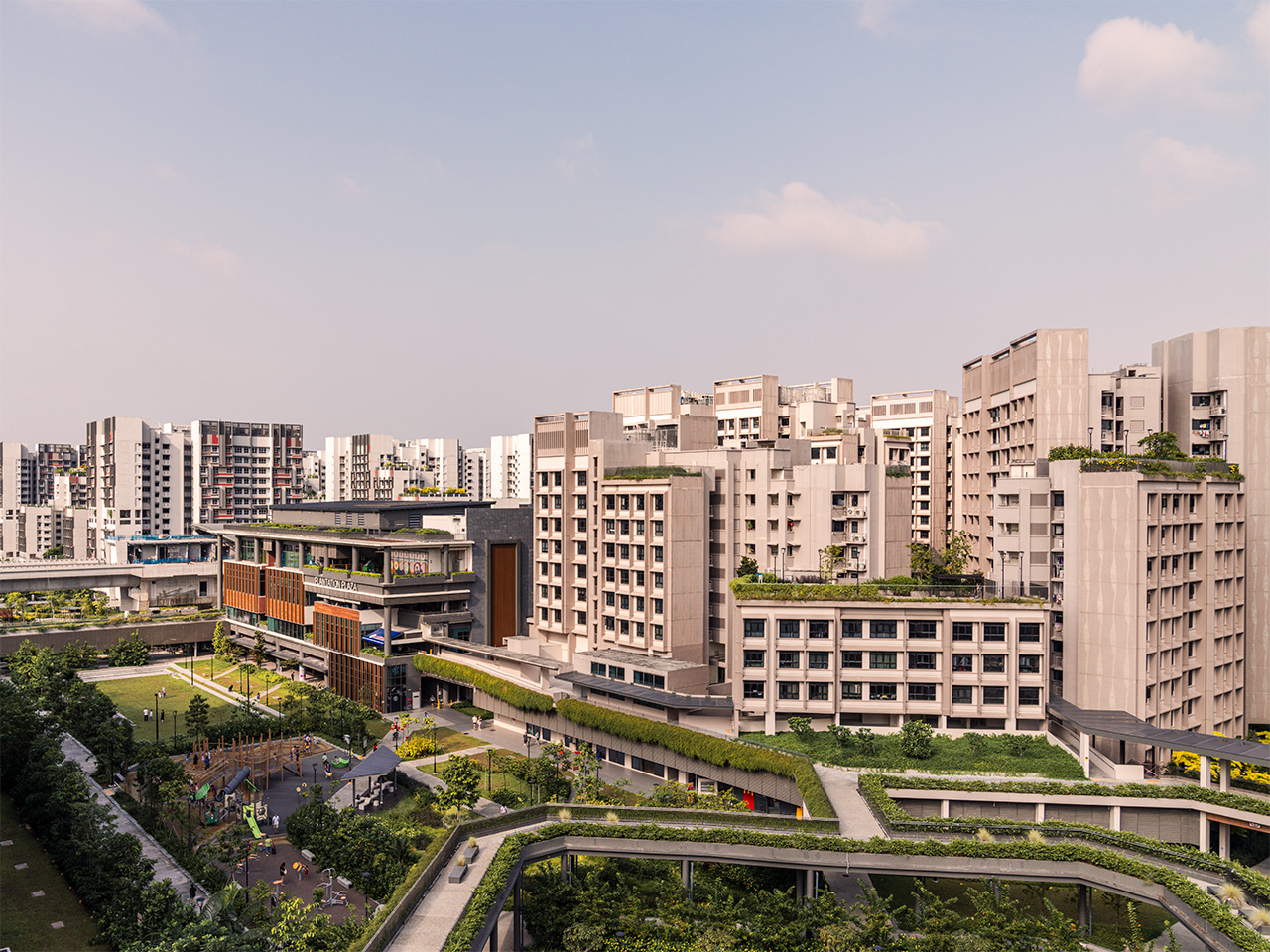 Exploring Tengah on foot leaves a striking impression. Two “community farmways” – 40-metre-wide, 1.3km-long tapestries of pavilions, nature-themed playgrounds and fitness areas, all amid luxuriant flora – blur the line between a housing estate and a park. The playgrounds are positioned beside the fitness areas and outdoor seating to foster a sense of community | | | | |