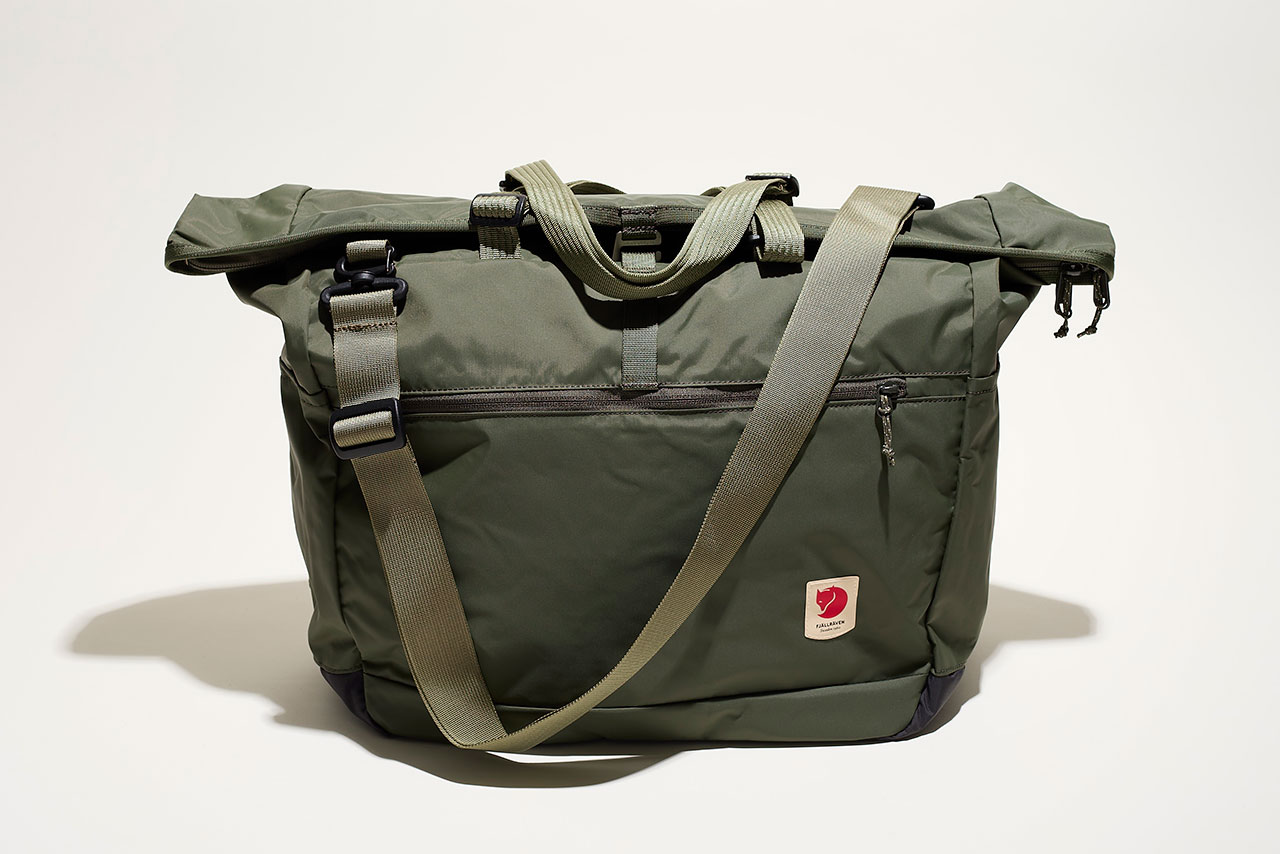 Slip on a foxy number with a Fjällräven shoulder bag