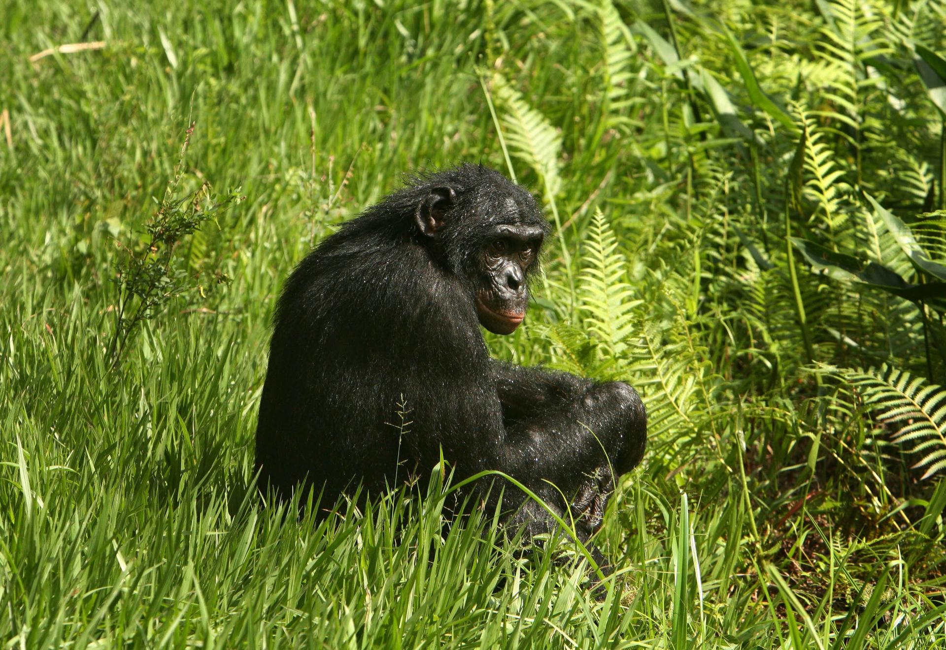 A bonobo ape sits in the grass at Lola Ya Bonobo sanctuary just outside the capital Kinshasa, Democratic Republic of Congo. REUTERS/Goran Tomasevic |
