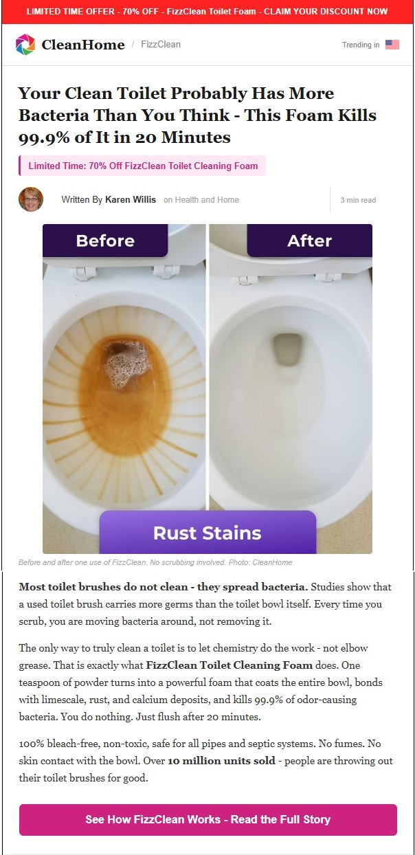 70% off today only - FizzClean Toilet Foam inside