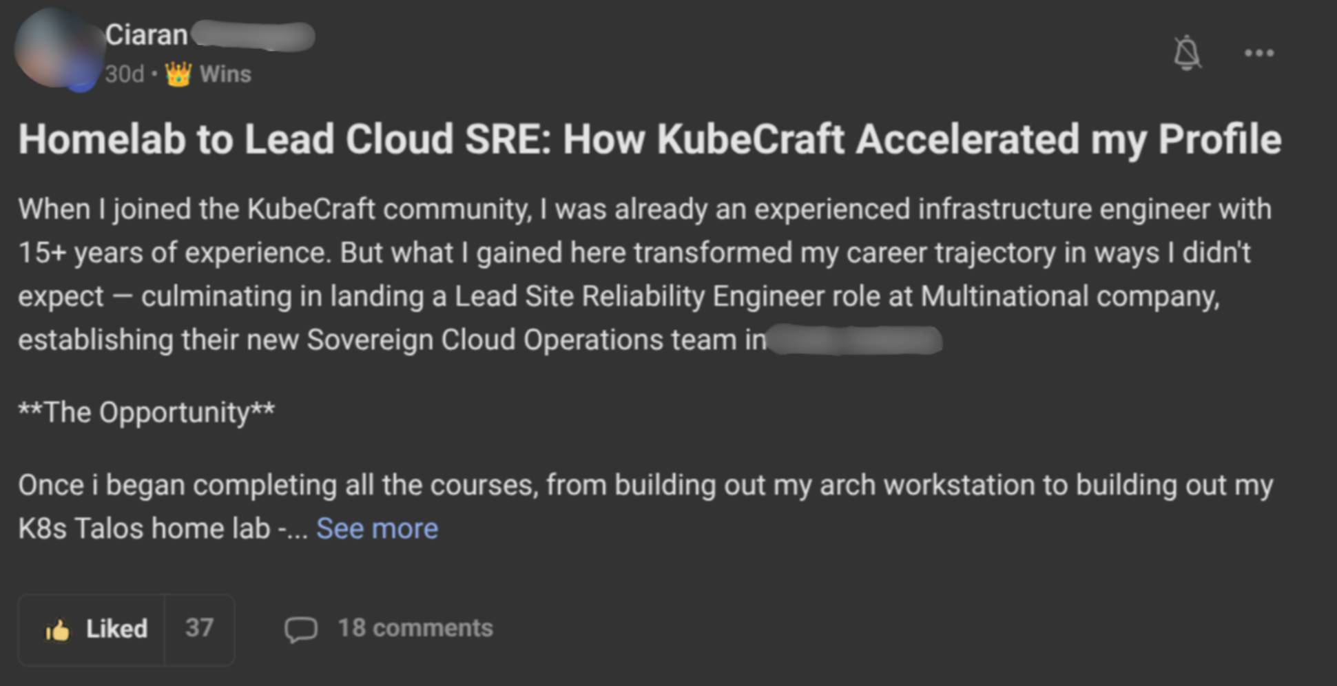 Being early in your career is not the problem. Being invisible and unstructured is. Objection 3: “I’m already experienced. Is this really going to move the needle?”Ciaran had 15+ years as an infrastructure engineer. He wasn’t trying to escape help desk. He was already senior. After joining KubeCraft he: