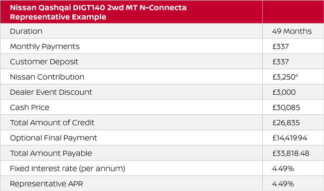 4 Nissan deposit contribution of £3,250 is only available when taken on 4.49% APR
