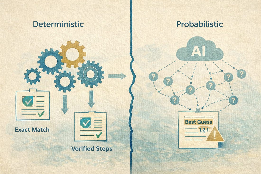 Probabilistic vs. Deterministic: Why Tech Writers Need To Understand The Difference NowKnowing the difference between a system that follows rules and a system that places bets is paramount to success in an AI-powered worldArtificial intelligence (AI) has introduced a new kind of workplace confusion, and not the fun kind where someone brings in an unfamiliar brand of sparkling water and everyone pretends to love it. No, this is the more consequential variety. The kind where people use words like probabilistic and deterministic as if everyone in the room was born knowing what they mean. Most people weren’t. That matters, because if you work in tech comm, those two words now describe a fault line running straight through our profession. If we don’t understand the difference, we risk misunderstanding what AI is good at, what it is bad at, and why it sometimes produces polished nonsense with the confidence of a middle manager explaining a spreadsheet he did not build. Two Words That Explain A LotLet’s start simply. 👉🏾 A deterministic system produces the same output every time, assuming the same input and conditions. You press the button, and it behaves as expected. Again. And again. And again. Deterministic systems are governed by fixed rules. Traditional software functions often work this way. If a user enters a valid password, the system grants access. If they do not, it refuses. No soul-searching. No improvisation. No jazz hands. 👐 👉🏾 A probabilistic system works differently. It produces results based on likelihood, not certainty. It makes predictions about what output is most likely to fit the input. Large language models do this constantly. They do not “know” the next word in the way a database knows a customer ID. They generate language by calculating which sequence of words is most probable based on patterns learned from training data. That means a probabilistic system can produce different (think “inconsistent”) outputs from the same prompt. It can sound sure while being wrong. It can be useful, impressive, and fast. It can also make things up that are untrue. And there, at last, is the neighborhood where we tech writers now live. Why This Distinction Matters In An AI-powered WorldFor years, tech writers have worked in environments that leaned heavily deterministic.