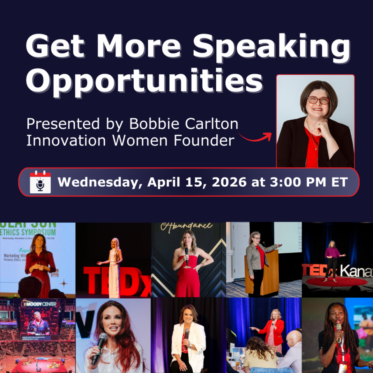 Join us for this free session where we’ll show you how to find and land speaking opportunities, craft a strong speaker presence and tap into the Innovation Women community and our tools that support your growth every step of the way. Learn more about what to expect here.