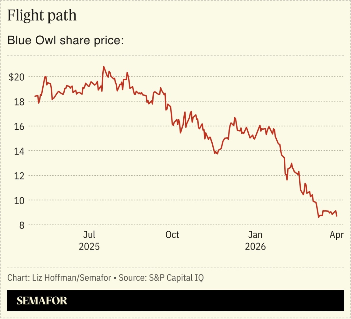 Expectations mismatch is always a risk — companies are, to executives’ annoyance, judged not on whether they grow profits, but whether that growth exceeds Wall Street’s to-the-penny forecast — but the mismatch hits harder in today’s extra-twitchy market. Investors desperate for clarity don’t know what to do with Trump’s shifting goal posts. It’s the same story for software investors, who expected sticky growth only to see AI melt the glue, and private credit investors, who are demanding their money back while managers tap the fine print. (Blue Owl is the latest; more on that below.)