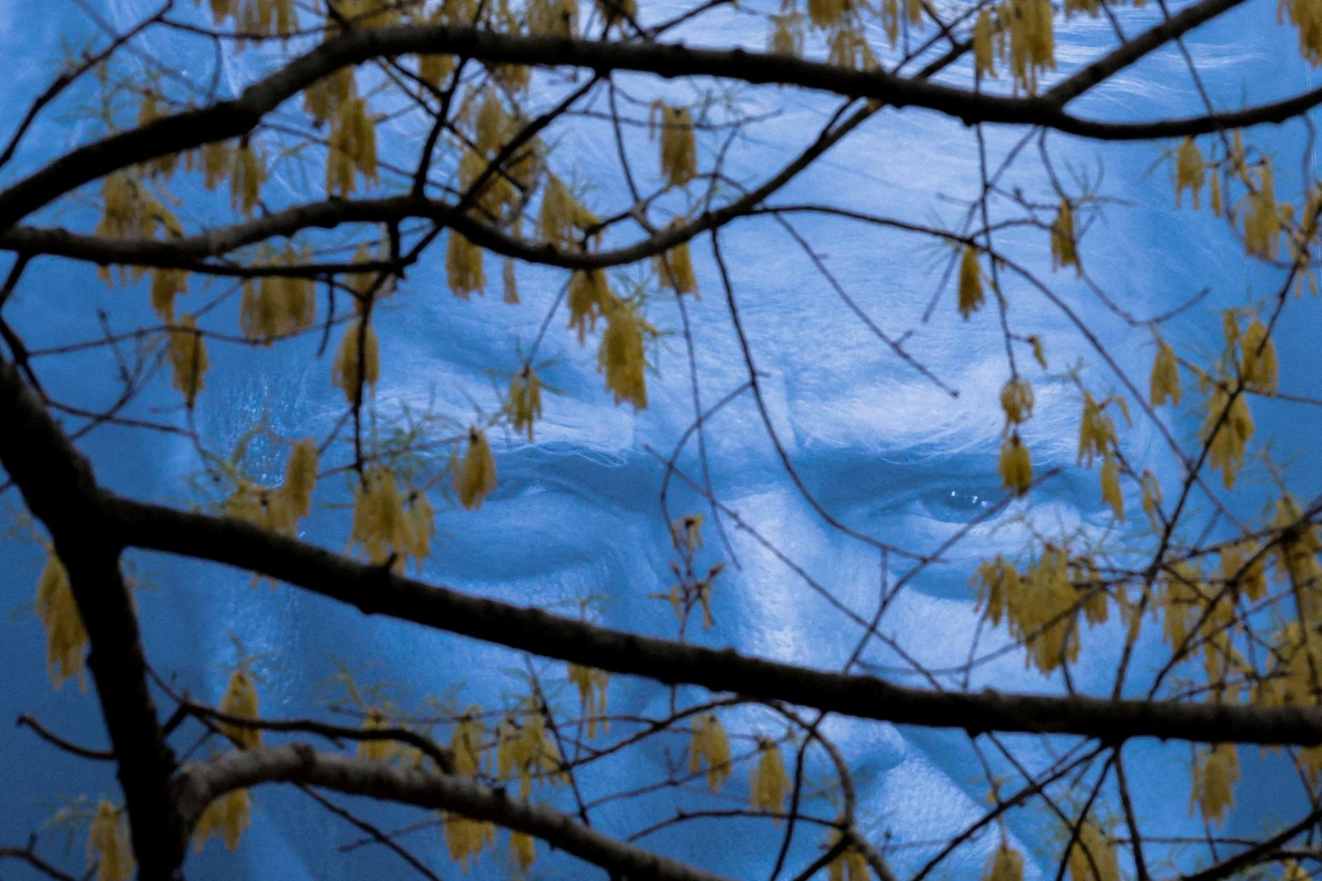 A banner depicting U.S. President Donald Trump hangs outside the Department of Justice building in Washington, D.C., U.S. REUTERS/Kylie Cooper